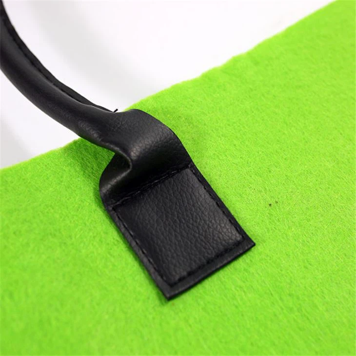 Stor størrelse reklame filt taske. Det grønne filtstof med læderhåndtag matcher meget godt, gør filtposen mere højkvalitets. Uanset om du skal shoppe eller ej, er denne taske velegnet, især velegnet til at pakke varer af høj kvalitet.